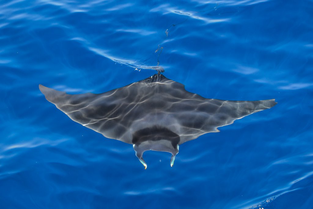Durante la traversata ha potuto ammirare almeno 40 balenottere comuni ma anche stenelle, zifi, tursiopi e mante, pesci luna e pesci spada.